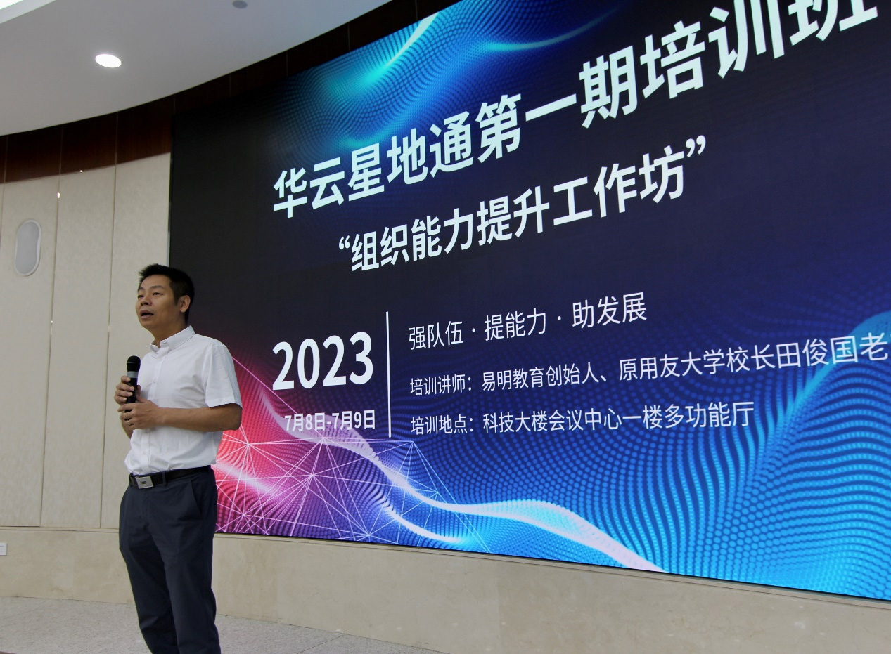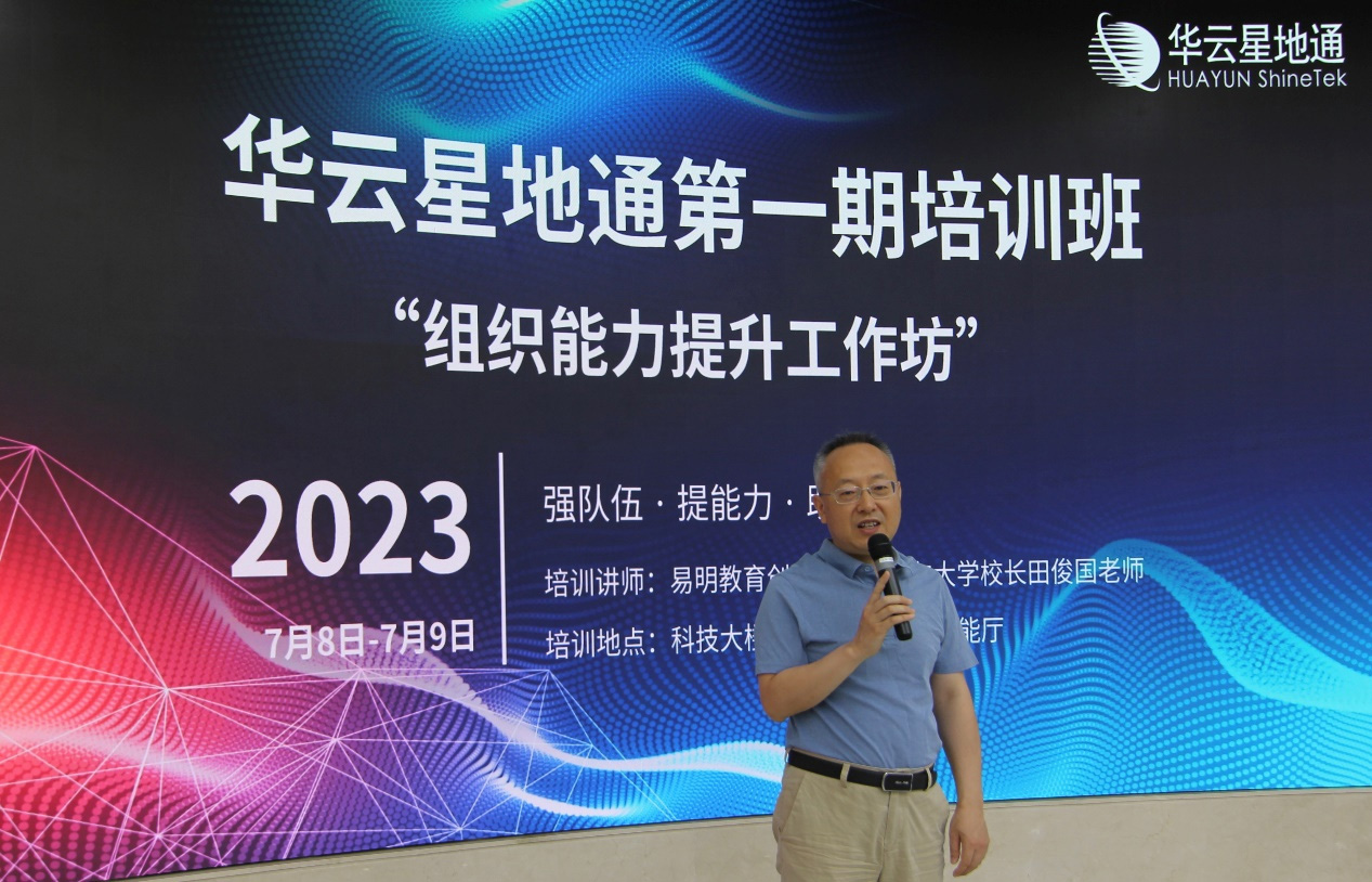 为贯彻落实星地通公司“十四五”人才发展规划,践行新时代人才强司战略,全面提升公司组织能力,夯实人才队伍,2023年7月8-9日,星地通公司举办了全体员工第一期培训班“组织能力提升工作坊”。本次培训特别邀请到易明教育创始人、原用友大学校长田俊国担任主讲老师,由星地通公司市场营销部部长刘春彩担任主持人。